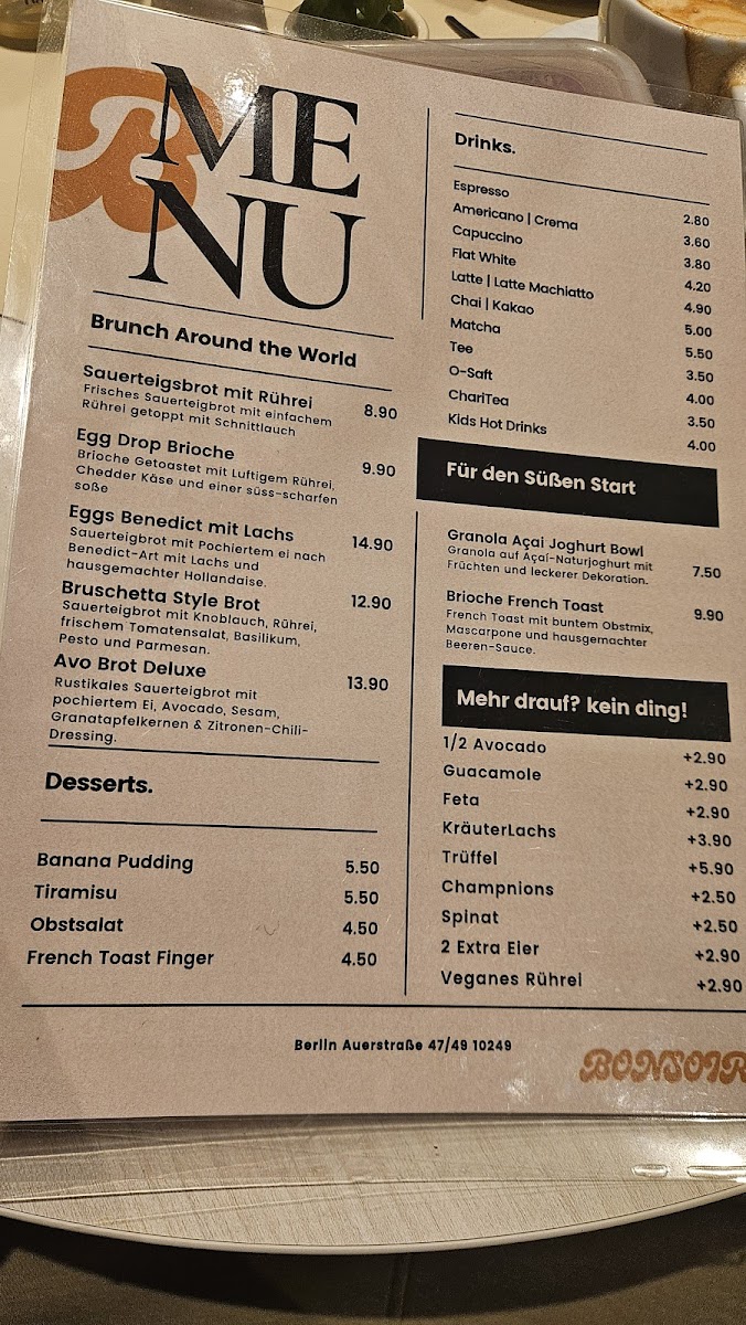 Welcome to Bonsoir Cafe, a charming gem located in the heart of Berlin at Auerstraße 47/49. This cozy cafe is known for its inviting atmosphere and friendly staff, making it an ideal spot for gatherings over brunch or a quiet coffee break.